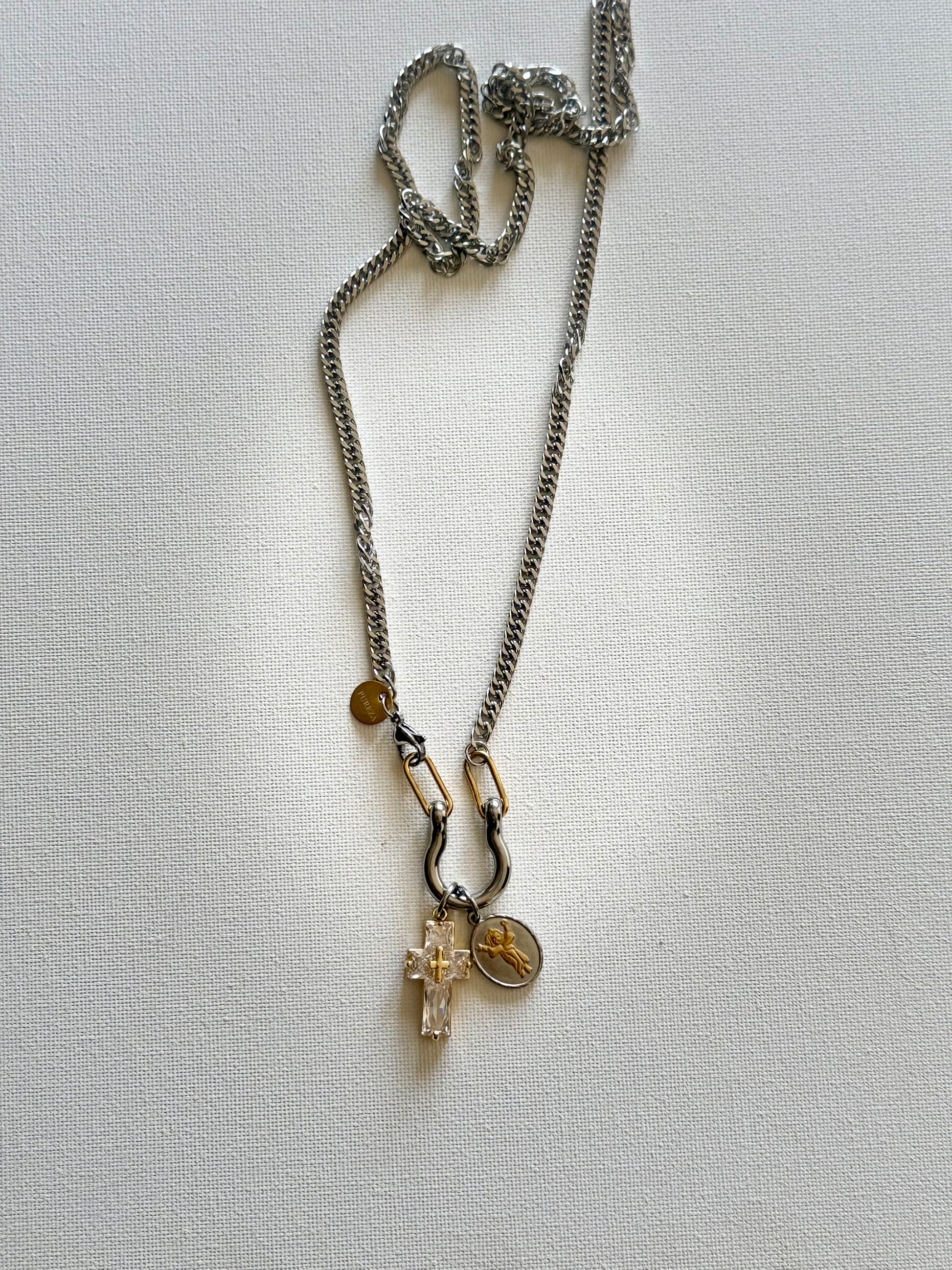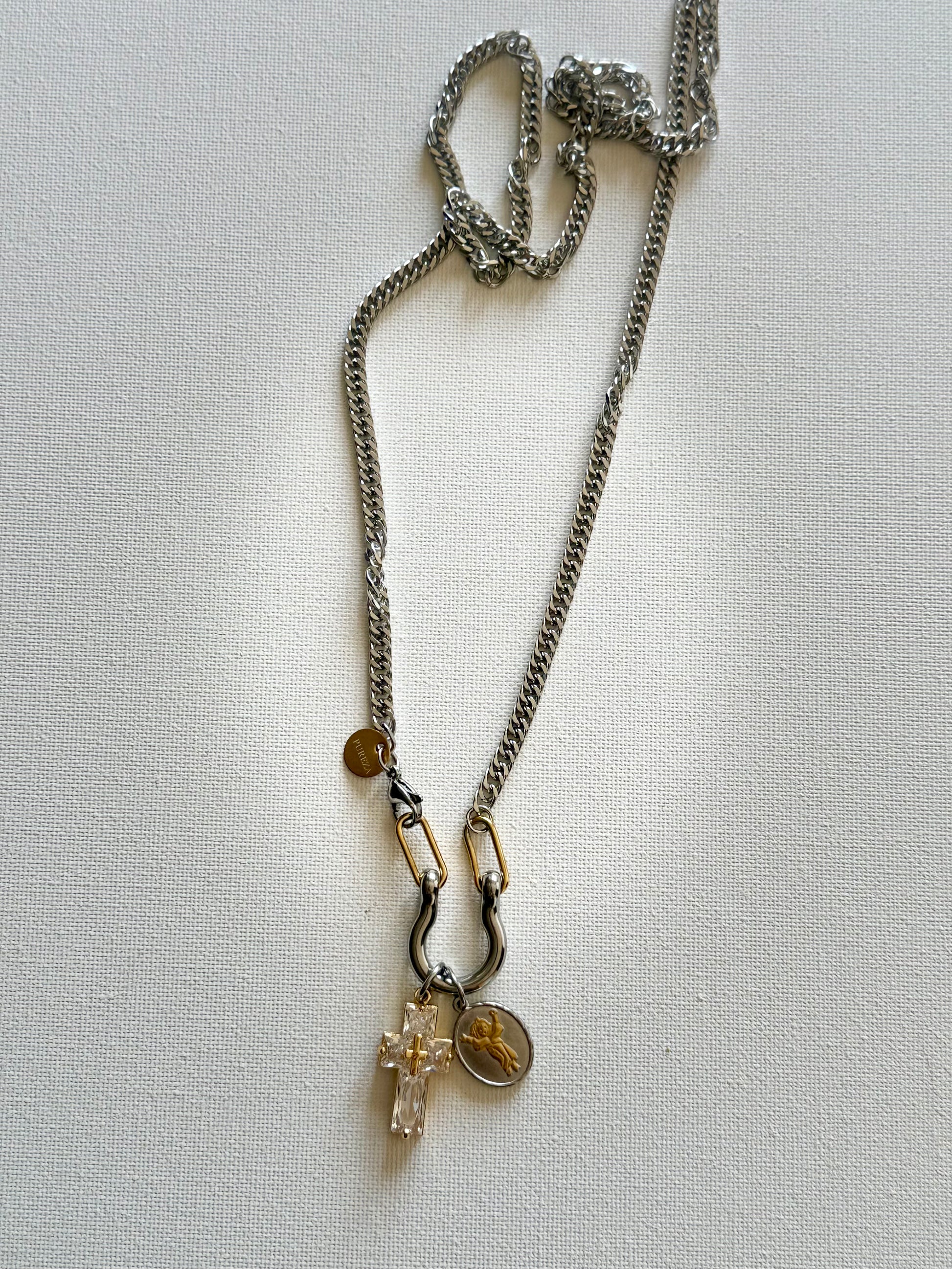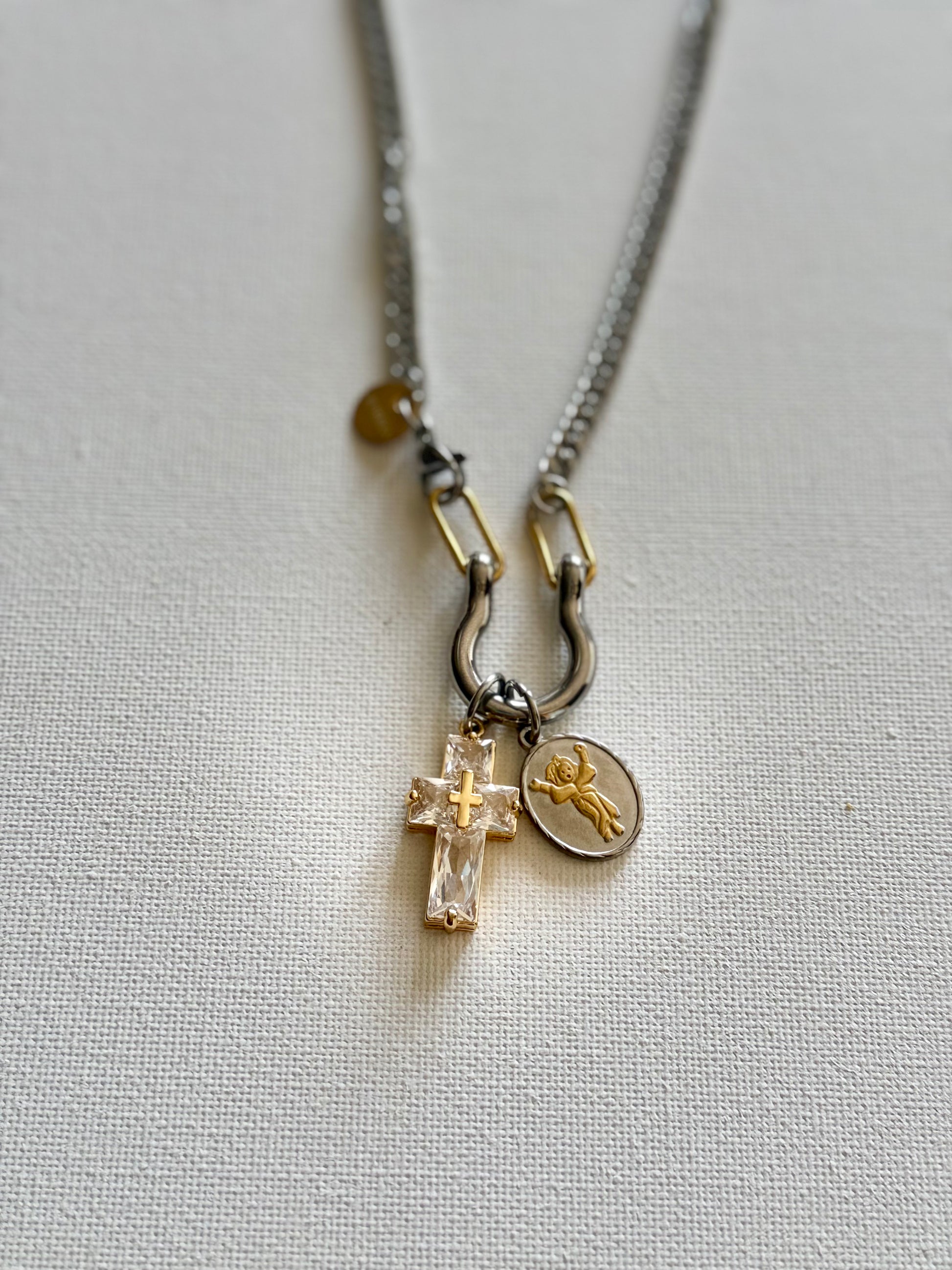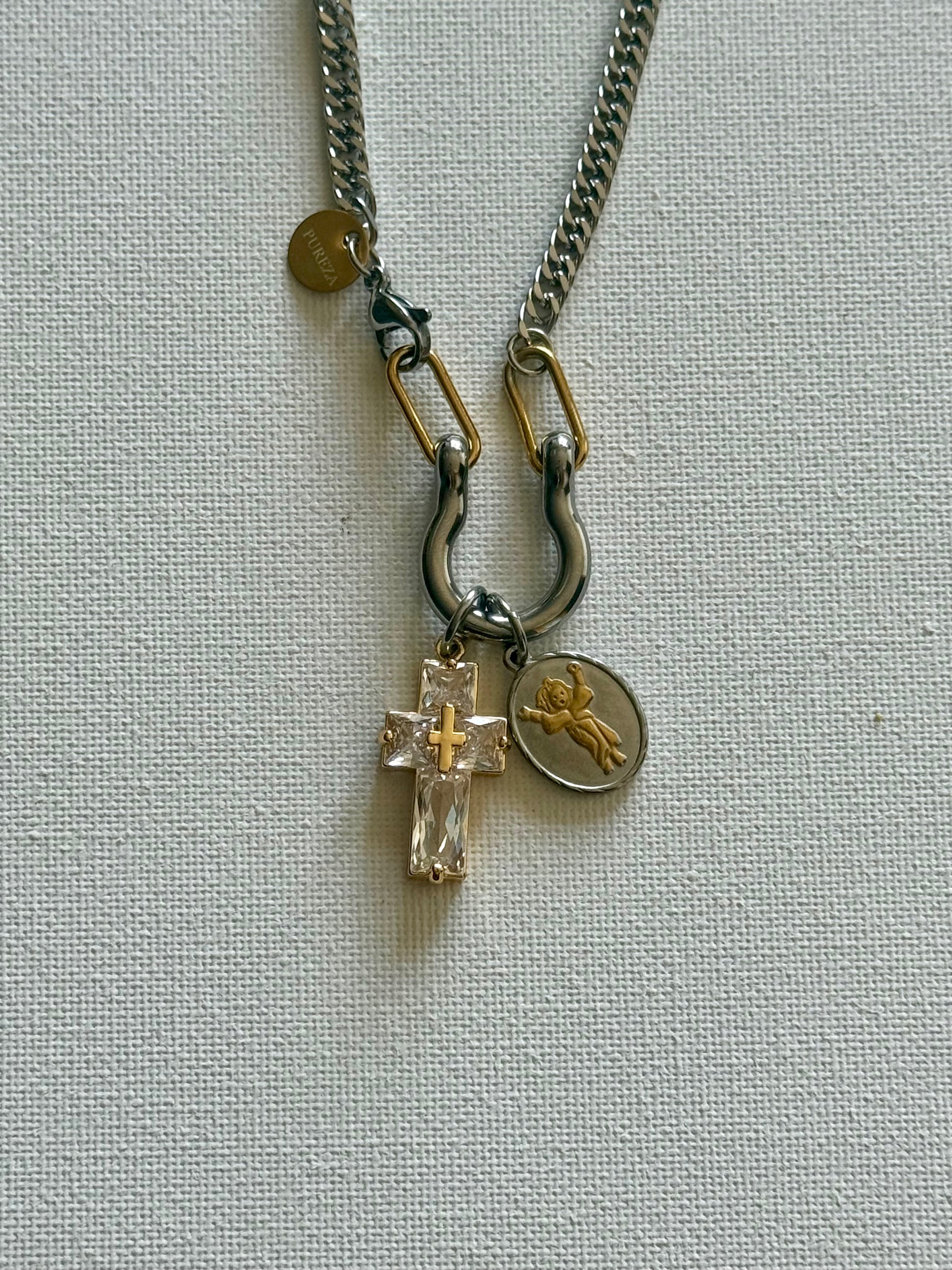 Colar Bicolor de Aloquete com 2 pendentes e pormenores dourados. Todo o colar em aço. Possível dar 2 voltas.