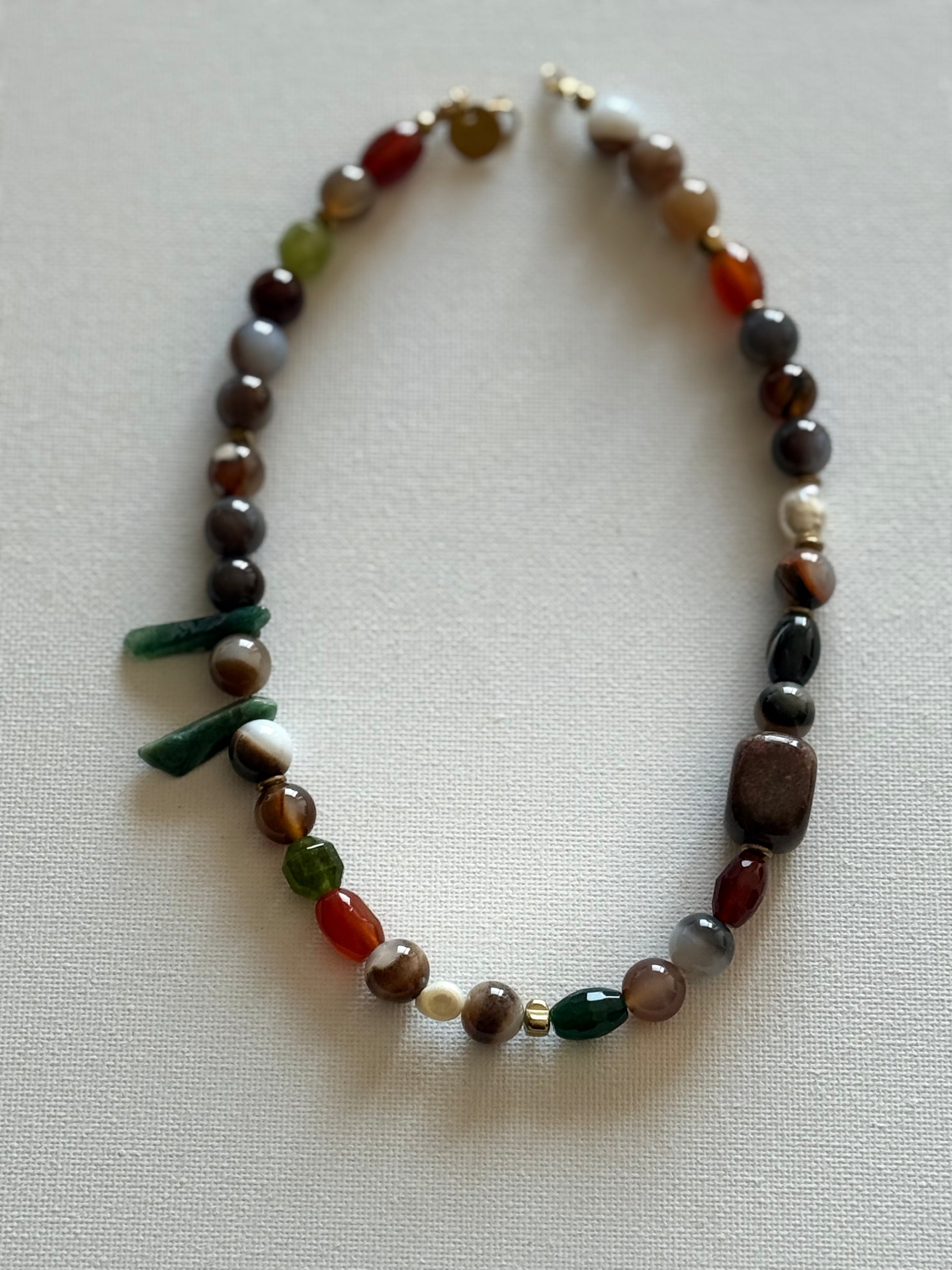 Colar Pedras Frias Multicolor, com entremeios e terminais de aço.