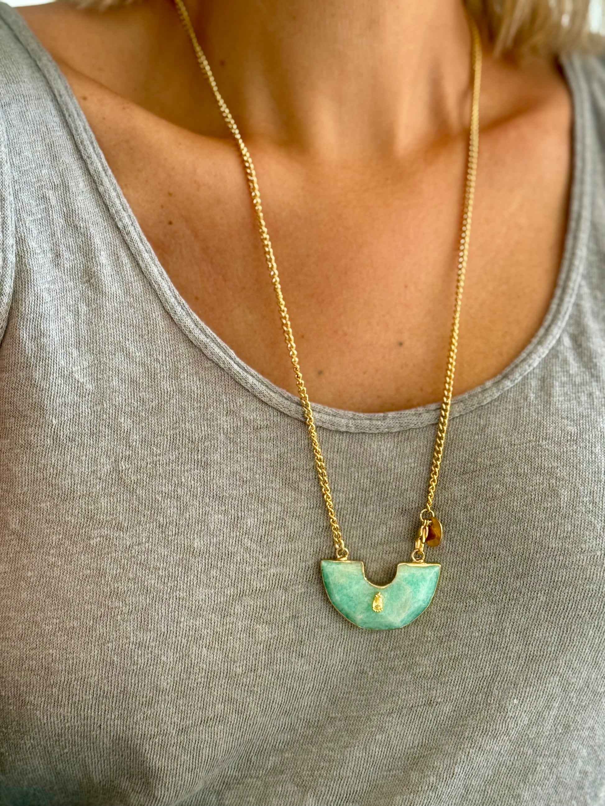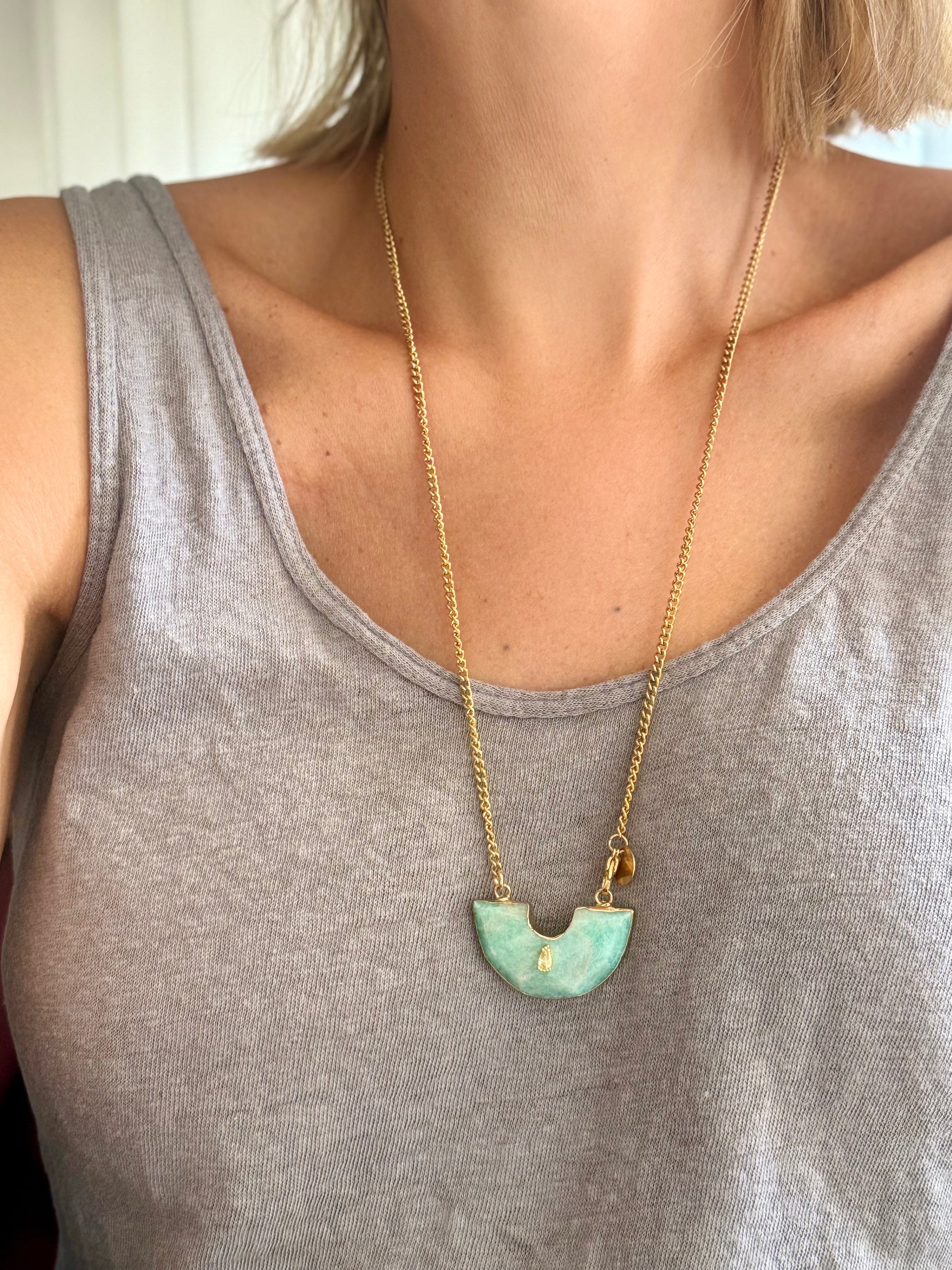 Colar Pendente Berço, com uma corrente de aço e com fecho lagosta.